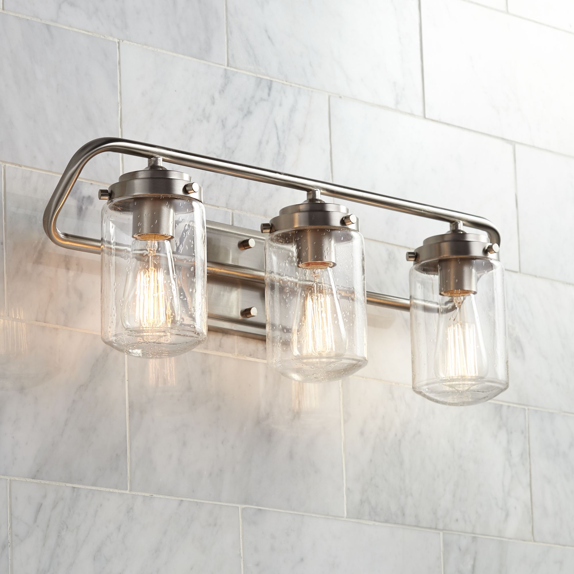 Current price 40 98 40. Sunnyfair 3 bulb light vanity fixture bathroom lighting brushed nickel finish with alabaster glass shades ul listed. Kichler 45733ni serena brushed nickel 3 light bathroom lighting sconce.