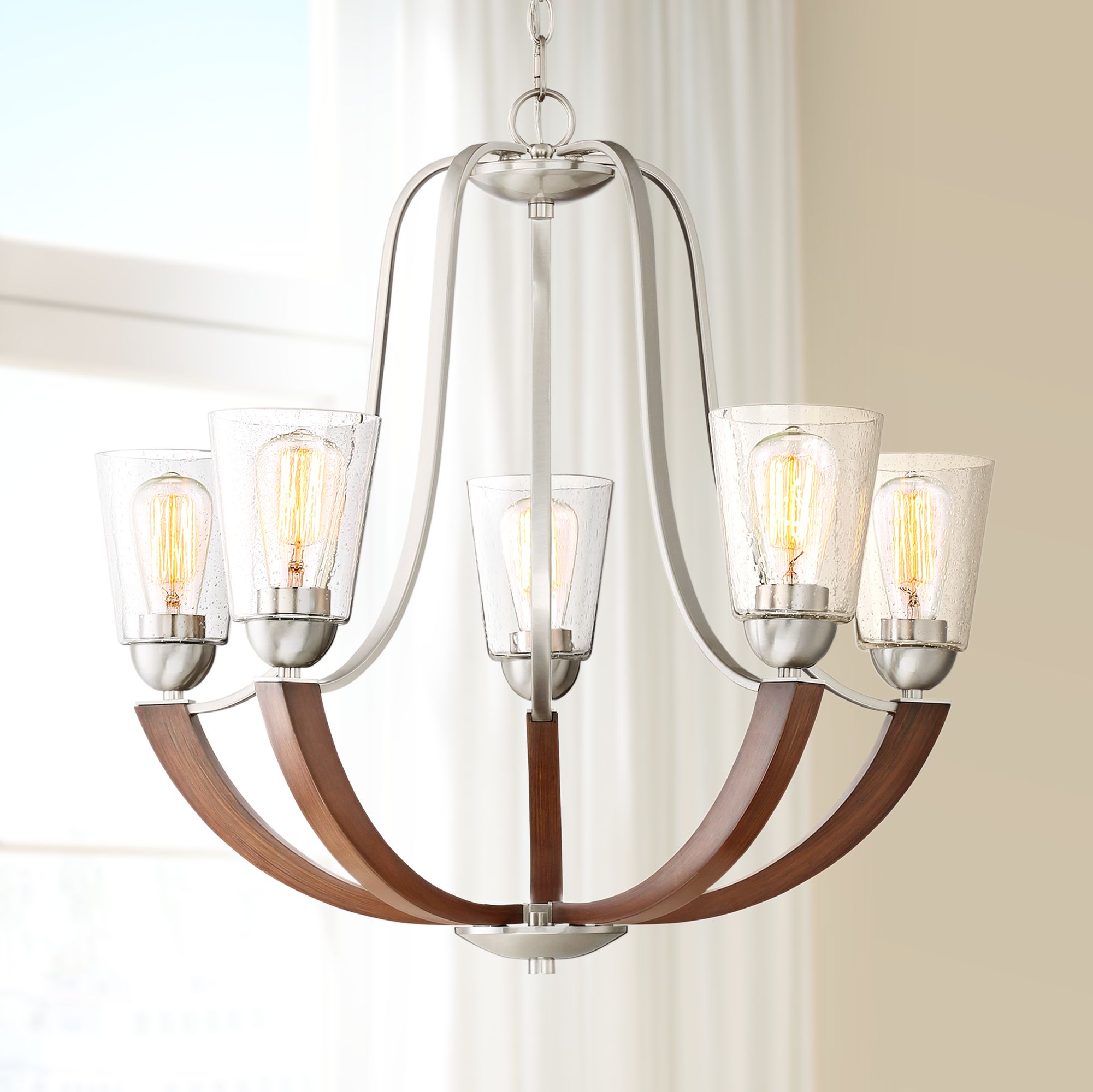 Z lite 6017 6l bn aranya brushed nickel pendant light fixture. Possini euro design brushed nickel chandelier 26 3 4 wide curved arms clear frosted glass 5 light fixture for dining room house walmart com. Featuring a brushed nickel finish and etched white glass shades this fixture has simple clean lines and will complement a variety of decor.