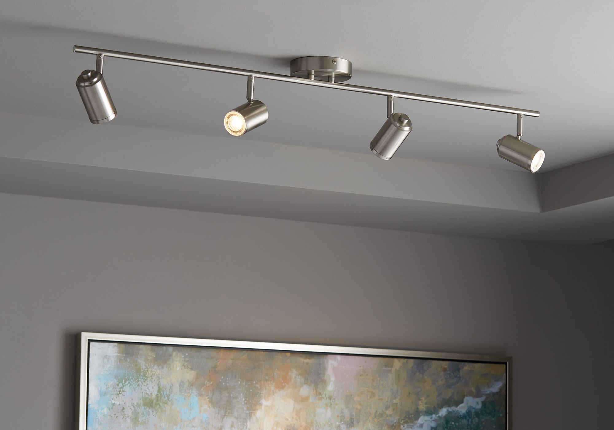 Bennington it35604 bpt gd sheridan 4 light ceiling or wall track lighting brushed nickel. Globe electric westmore 4 light brushed nickel track lighting bulbs included 59237. Brentwood 3 light 120v brushed nickel track lighting ceiling light.