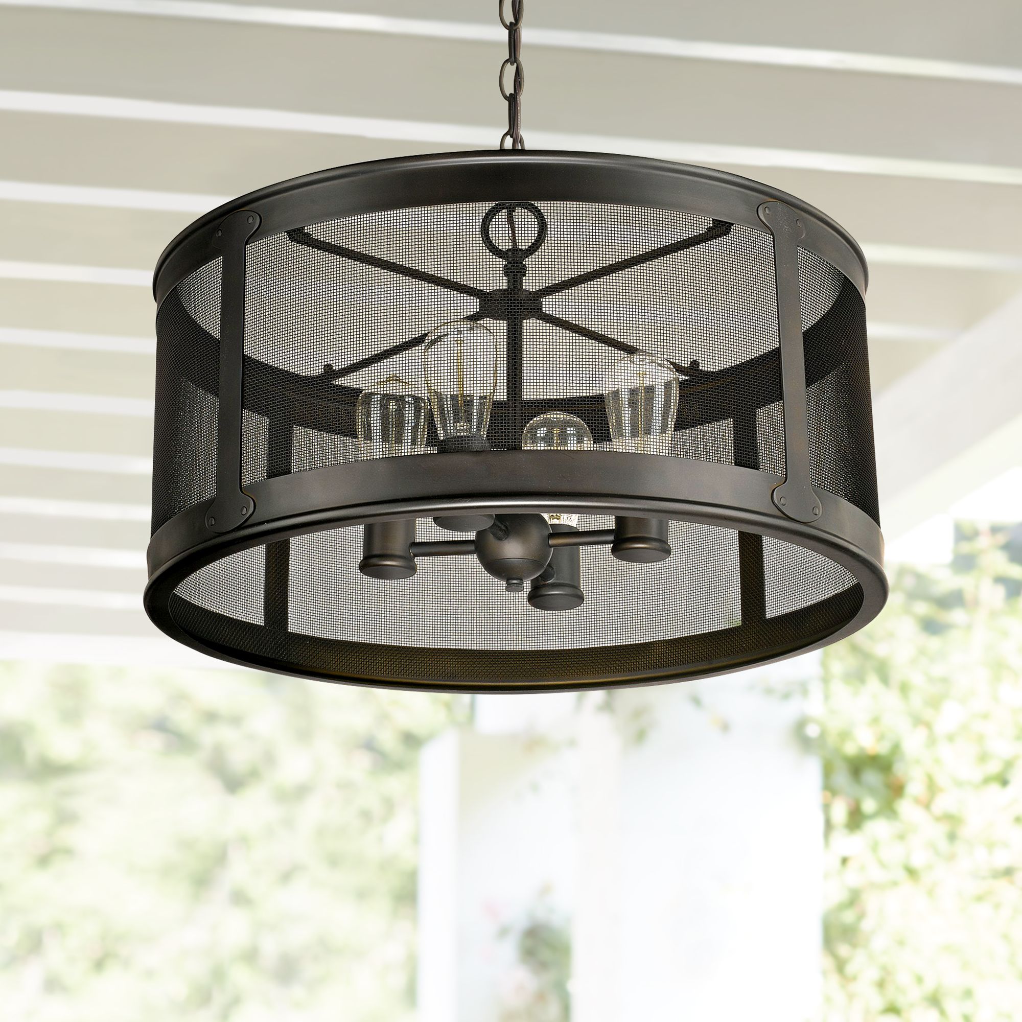 Capital lighting dylan 4 light outdoor full sized pendant. 60 of adjustable chain included. Includes a clear glass shade.