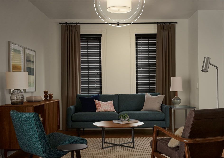 Opting for higher sheen shades of white creates a reflective surface that allows light to bounce around the room for a brighter atmosphere. For avid television watchers dimmable overhead lighting is the way to go for general illumination. Find a perfect centerpiece for the entertaining rooms in your home.