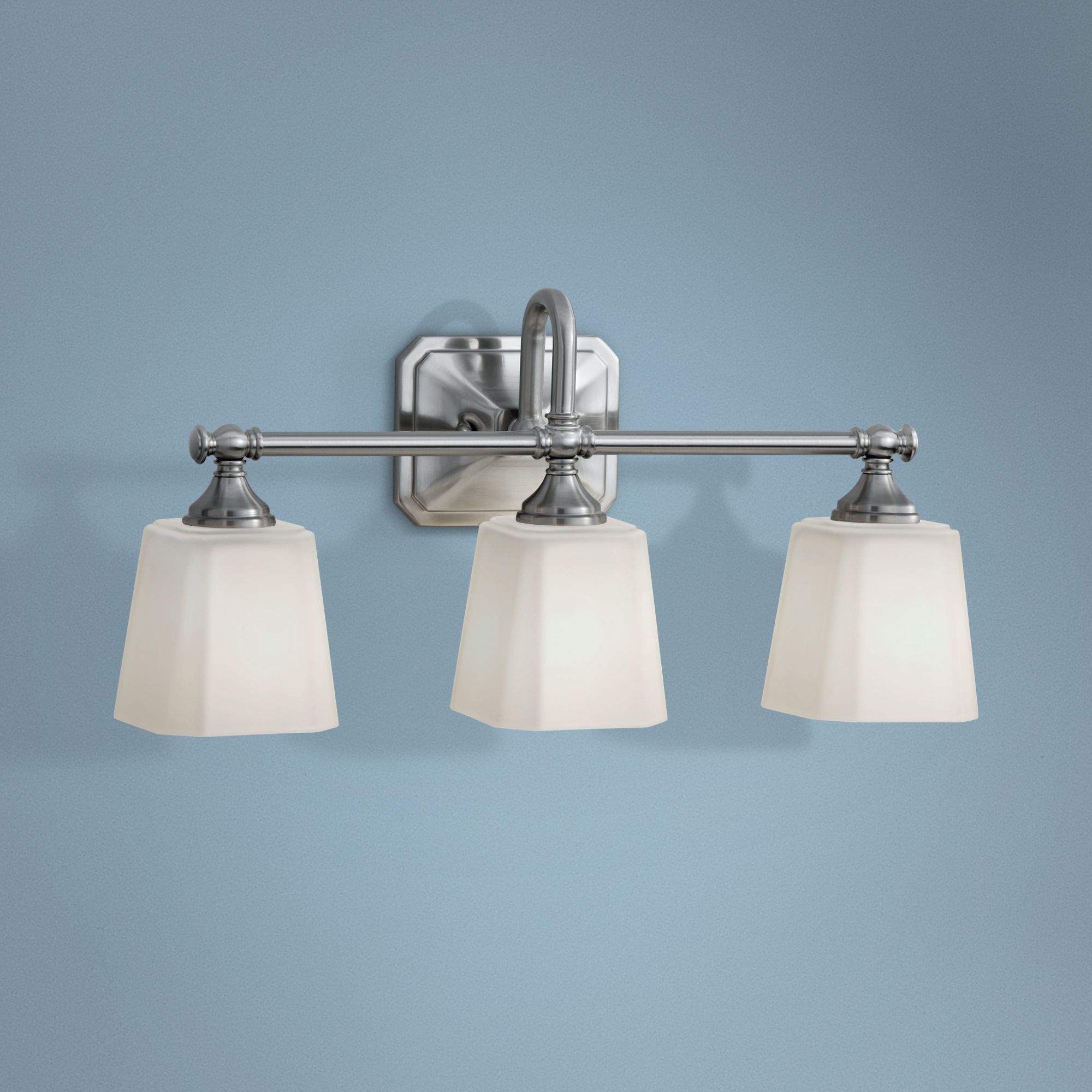 4 6 out of 5 stars 967. Solfart brushed nickel bathroom lighting fixtures over mirror modern glass shade vanity lights wall sconce 3 lights 4. More buying choices 58 46 20 used new offers sorren modern wall light polished nickel hardwired 20 1 2 wide 3 light fixture curving clear glass for bathroom vanity mirror possini euro design.